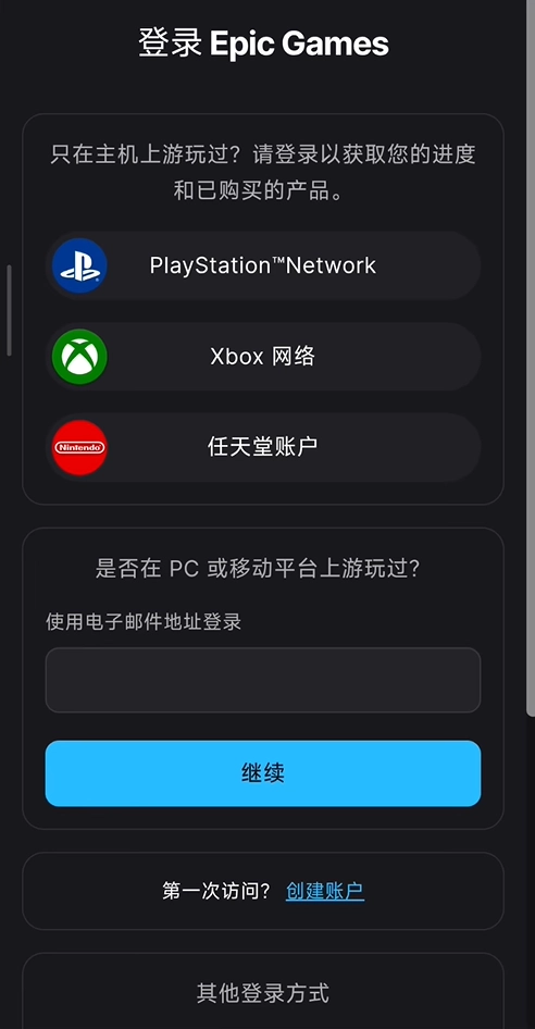 3、如果之前没有注册过epic账号,可以点击创建账户,然后用电子邮箱进行注册