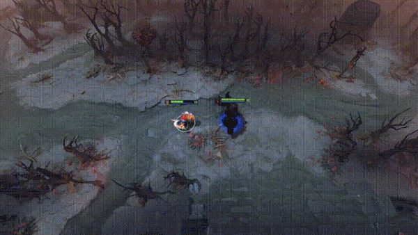 斯拉克向前跳跃,束缚第一个碰到的英雄。该单位只能在斯拉克着地点附近的有限范围内移动。