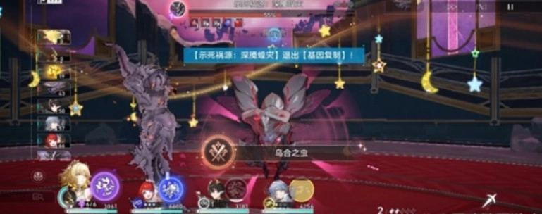 进入战斗后,boss在第一次行动的二动就会获得【基因复制】状态,召唤四只「幼蛰虫」并让玩家选择一名角色和角色的忆灵拉条,然后被拉条的角色获得【天敌】buff(只有【天敌】buff的角色才可以造成暴击伤害)