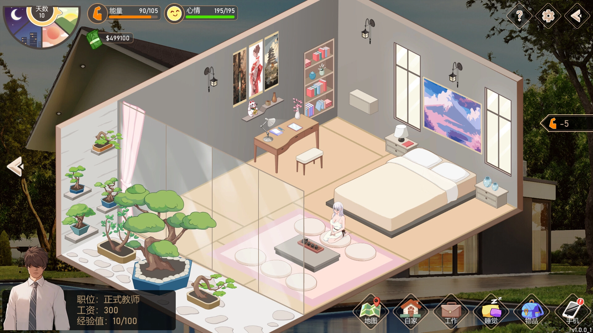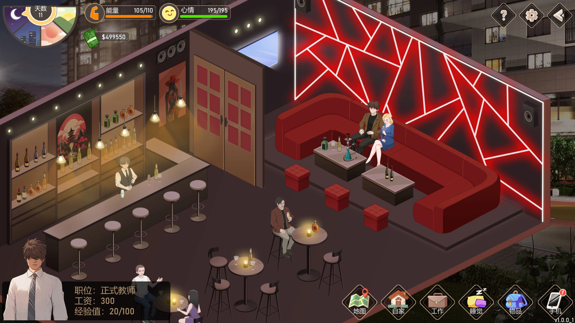 工作:上课可赚取工资,随岗位提升而增加,但会消耗体力和心情