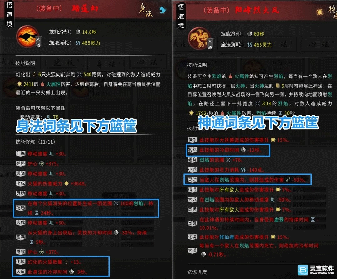 身法释放间隔:火系叠伤害的条件是身法释放间隔少于5秒,而火身法初始CD约为15秒左右,需要通过两种方式来减少。