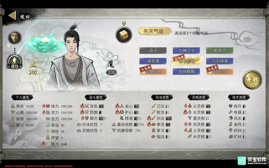 4、先天气运:剑系相关的,提升攻击、加悟性的、加功法资质的(天翎剑意需要达成特点结局在二周目才能选,一周目别想了,不过手游版本DLC大概率是莲花剑意,这个也不错!)