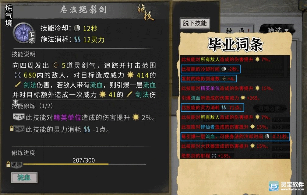 (2)图中标注的关键词条中,其中:引爆流血,减低身法CD时必须有的!