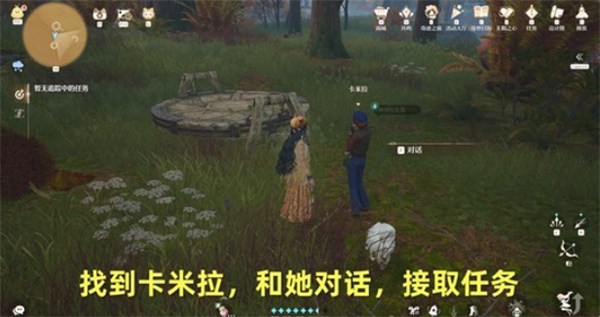 1、传送至【母菇林地】锚点,前往地图标记位置,找到NPC【卡米拉】,与其对话接取任务
