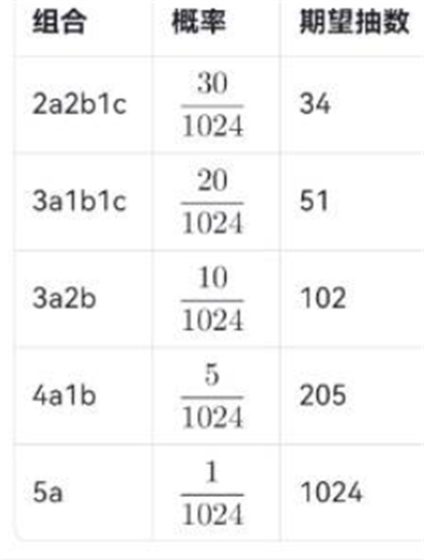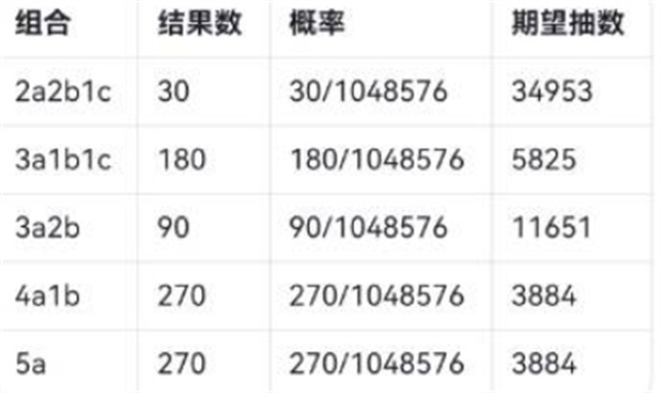 实验统计表明,不同组合出现的概率不同,期望实验次数如下(四舍五入为整数):