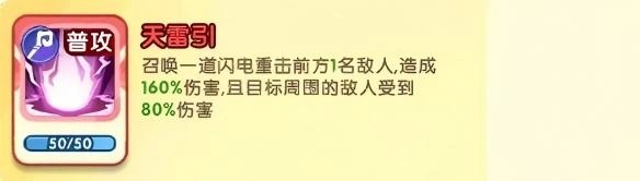 召唤一道闪电猛击前方的单个敌人,对其造成160%的伤害,同时目标周边的敌人也会受到80%的伤害。