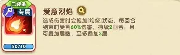 造成伤害时会施加[灼烧]状态,每回合结束时受到60%伤害,持续2回合;且可叠加层数,至多叠加3层