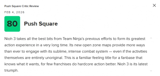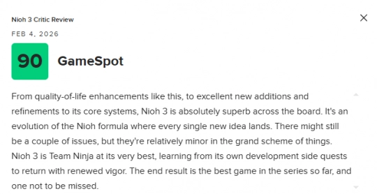 从这类贴心的便利性改进,到核心系统层面出色的新内容与精细打磨,《仁王3》几乎在各个方面都堪称卓越。这是对《仁王》公式的一次全面进化,每一个新增想法都精准落地、效果显著。或许仍存在少量问题,但放在整体体验中都只是无关痛痒的小瑕疵。《仁王3》展现了忍者组的巅峰水准——他们从过往开发历程中的“支线任务”里吸取经验,以焕然一新的姿态强势回归。最终呈现出的,是系列迄今为止最出色的一作,也是绝对不容错过的佳作。