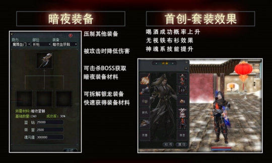 套装压制:首创“套装效果”——身着暗夜套装,压制其他装备
